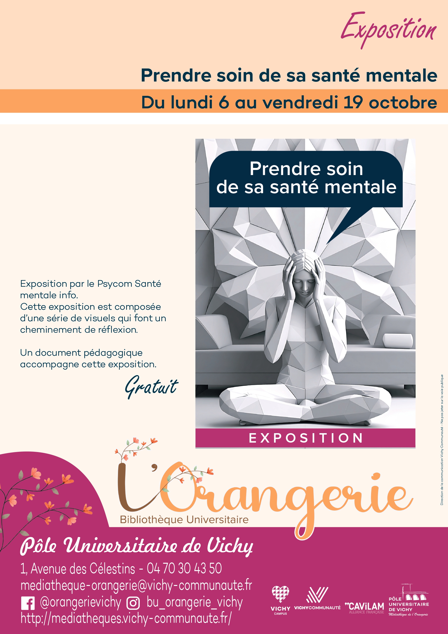 06Oct(Oct 6)8h0019(Oct 19)20h00EXPOSITIONPrendre soin de sa santé mentale