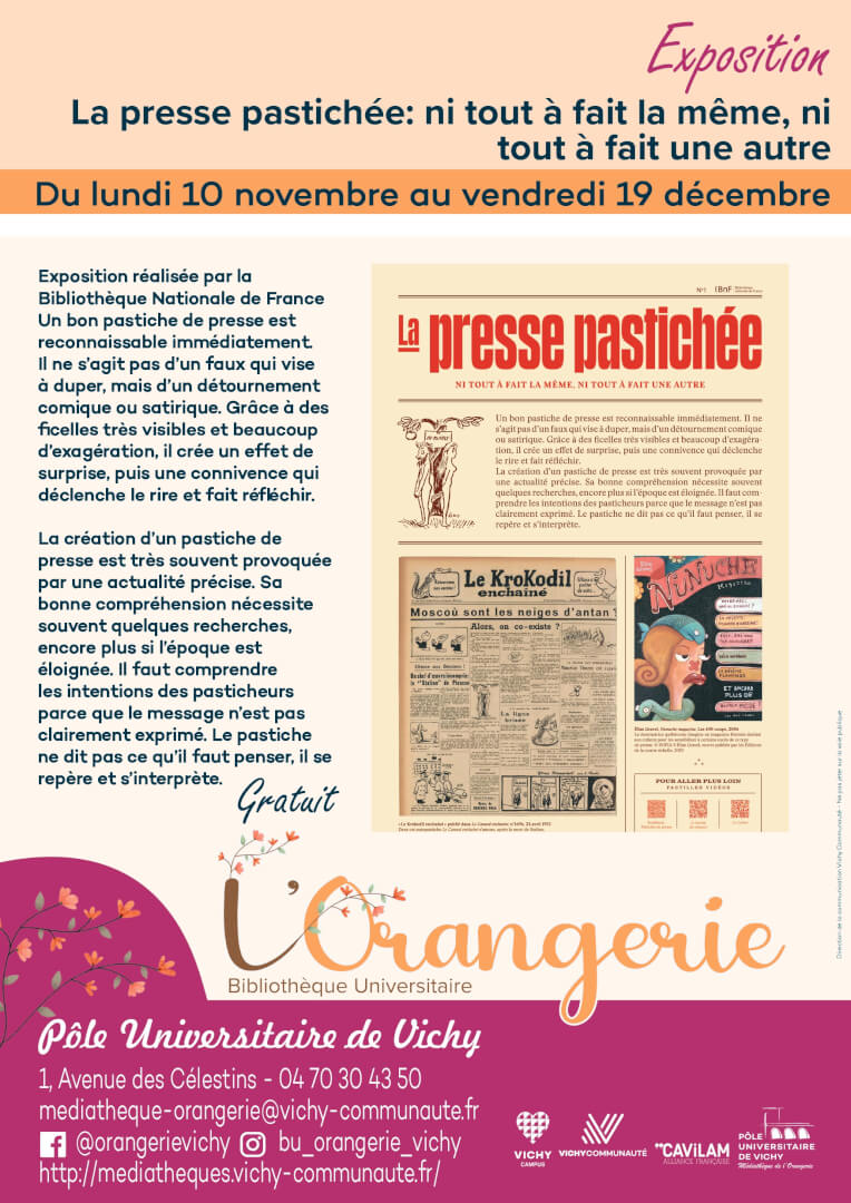 10Nov(Nov 10)8h0019Déc(Déc 19)20h00EXPOSITIONLa presse pastichée : ni tout à fat la même, ni tout à fait une autre