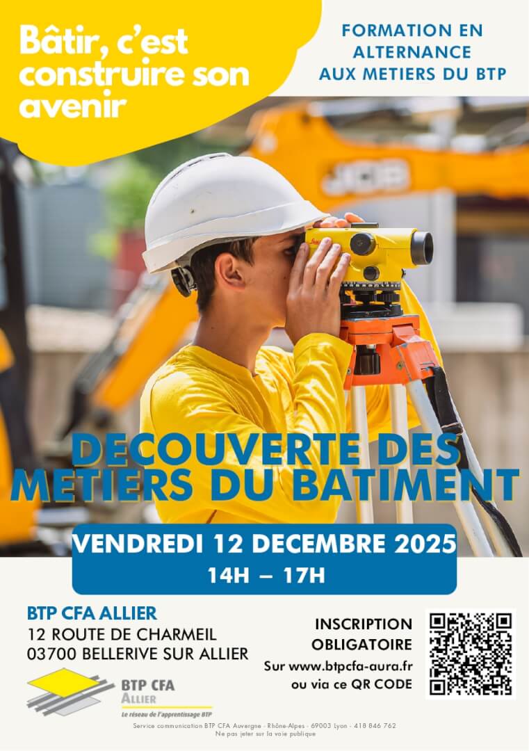 12Déc14h0017h00DÉCOUVERTE DES MÉTIERS DU BATIMENTBTP CFA ALLIER