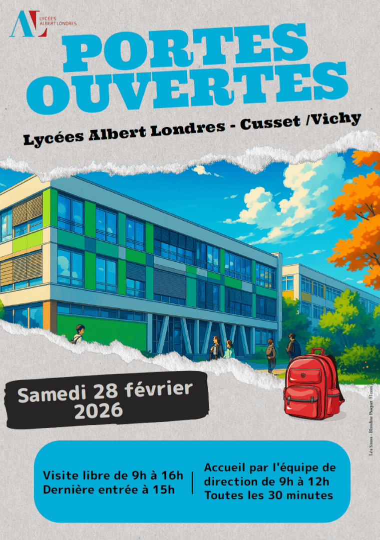 28Fév9h0016h00PORTES OUVERTES/LYCÉE ALBERT LONDRESVisite libre jusqu'à 16h - Accueil par l'équipe de direction de 9h à 12h
