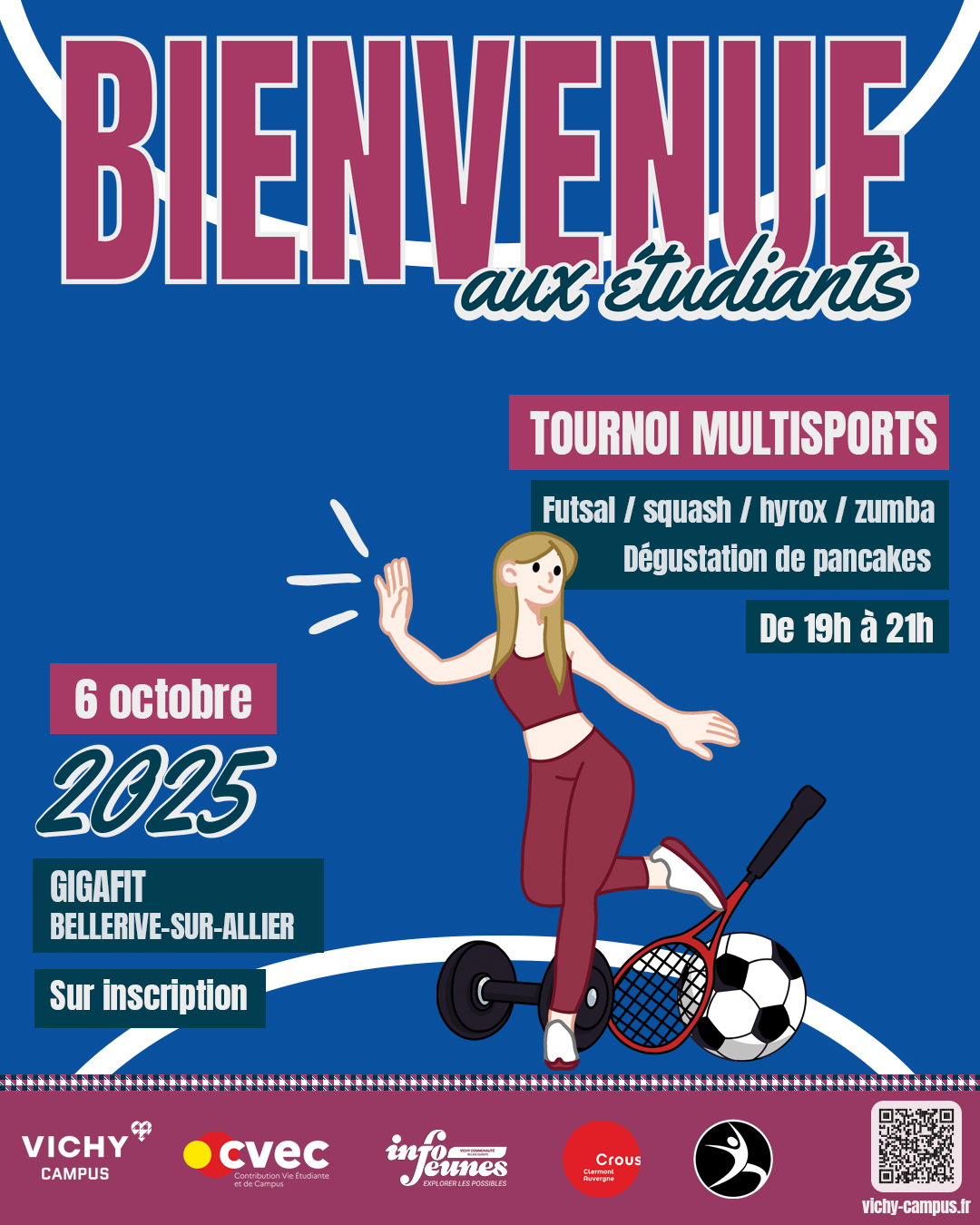 06Oct19h0021h00TOURNOI MULTISPORTSFutsal/Squash/Hyrox/Zumba et dégustation de pancakes